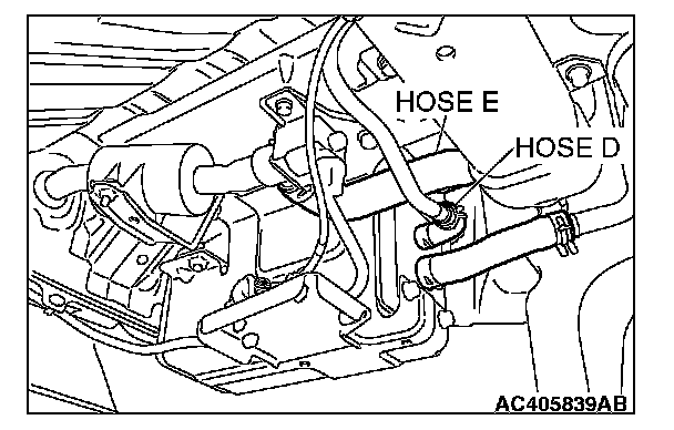 1. Disconnect hose F from the evaporative emission canister, and plug hose F securely.