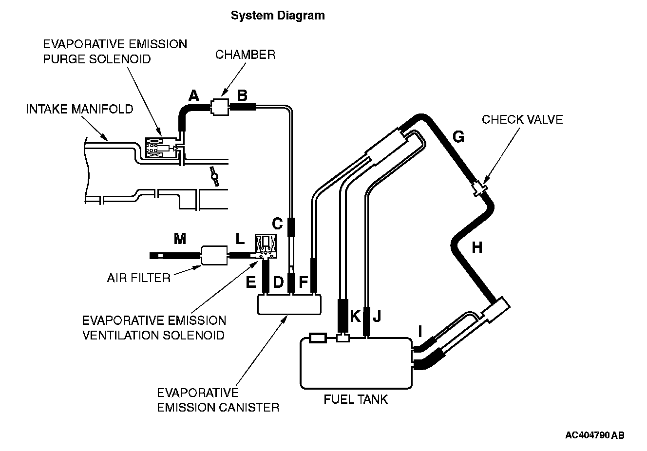 STEP 7. Pressure test the evaporative emission system lines from hoses F to K.