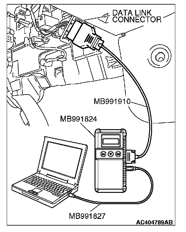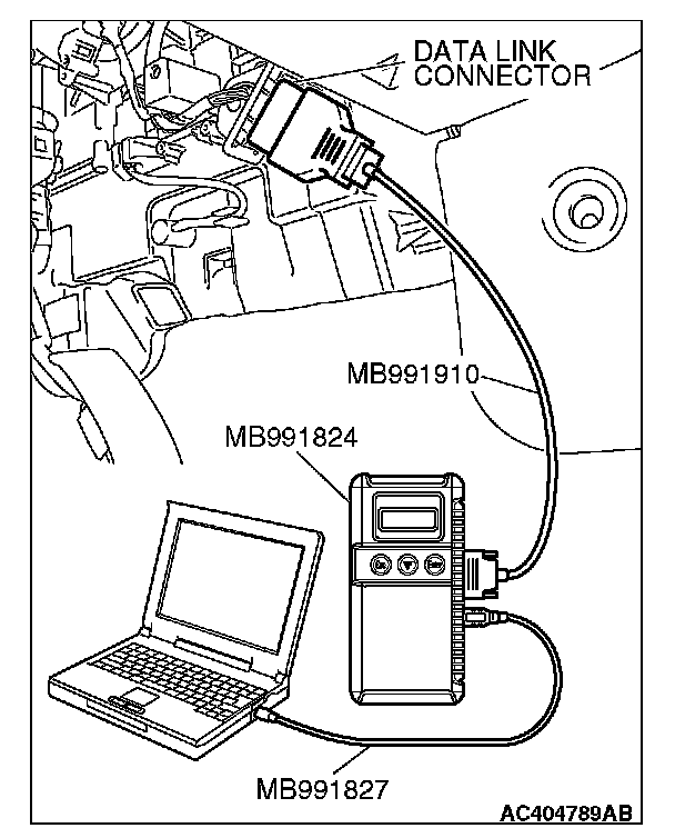 1. Connect scan tool MB991958 to the data link connector.