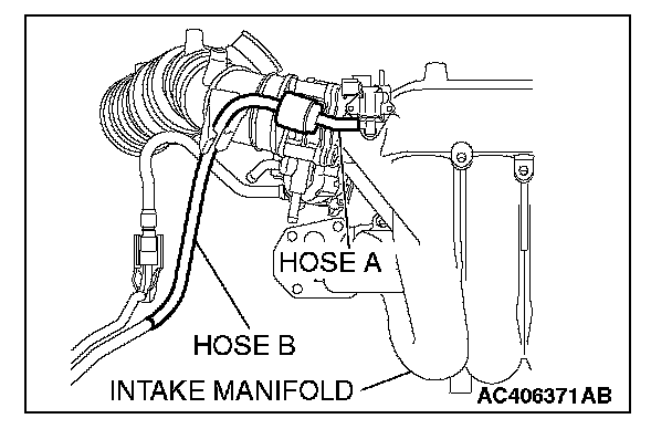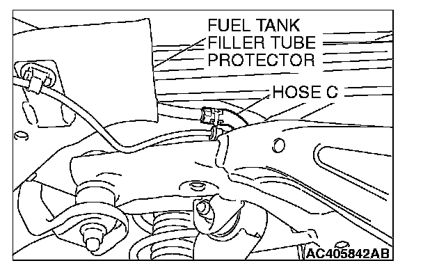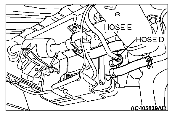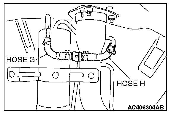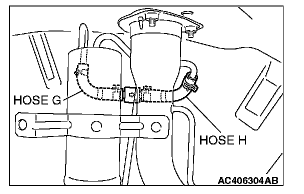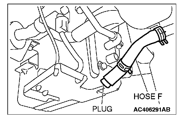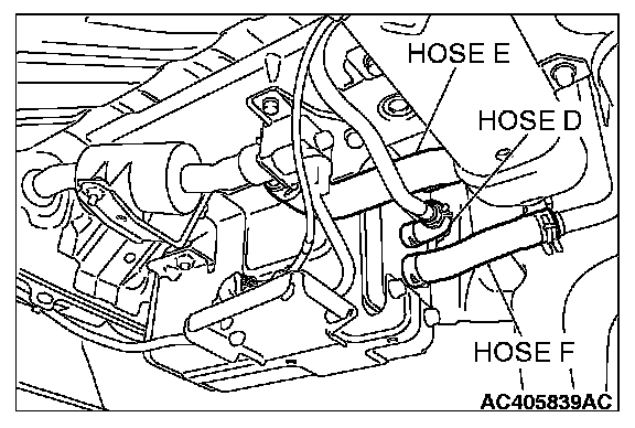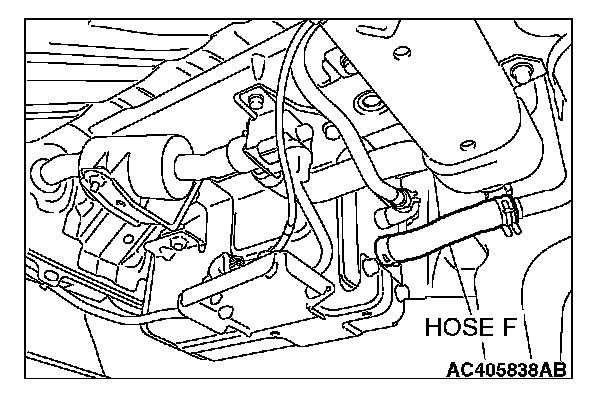 1. Disconnect hose F from the evaporative emission canister, and plug hose F securely.