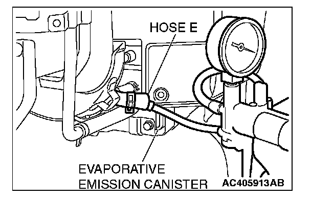 7. Disconnect the hand vacuum pump, and connect hose E to the evaporative emission canister.