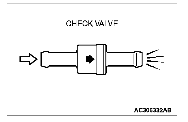 - When the evaporative emission purge solenoid valve is operated, apply a pressure on the hand vacuum pump and confirm that air is blown from the other side nipple.