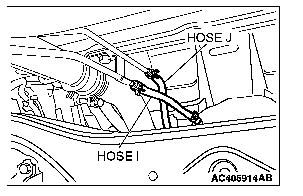STEP 15. Check for clogging in evaporative emission hoses I and J.