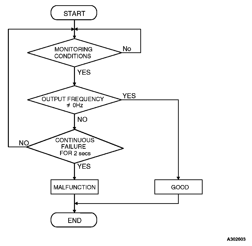 - If the vehicle speed sensor output does not change while the vehicle is being driven in the medium to high-speed range, a malfunction is determined to have occurred.