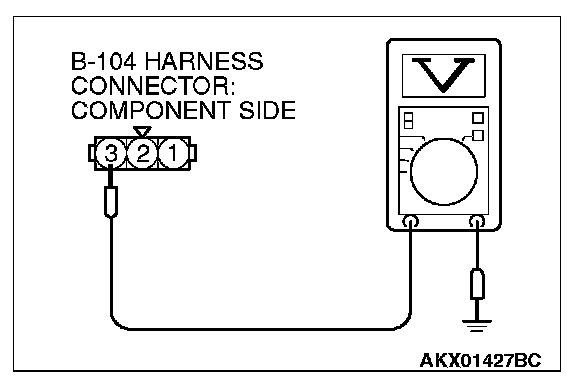 STEP 4. Measure the power supply voltage at vehicle speed sensor connector B-104.