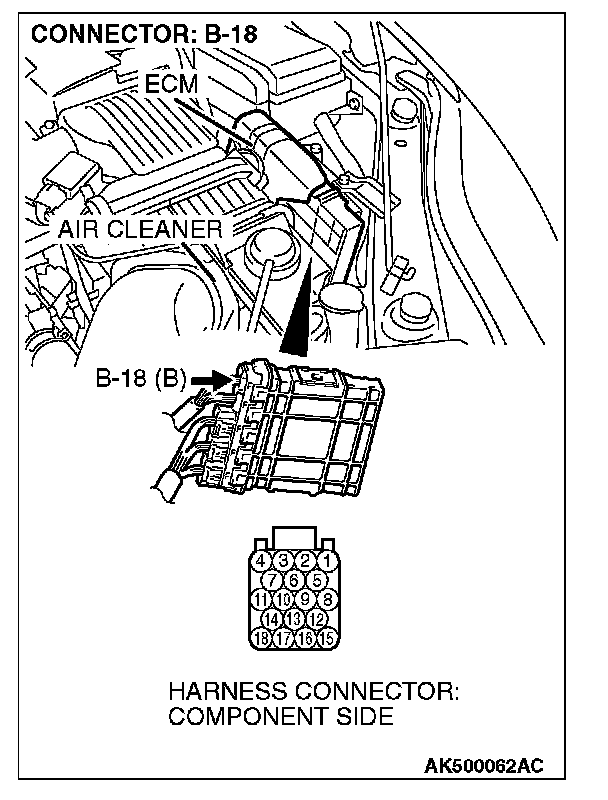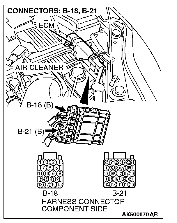 STEP 14. Check connectors B-18 and B-21 at ECM for damage.