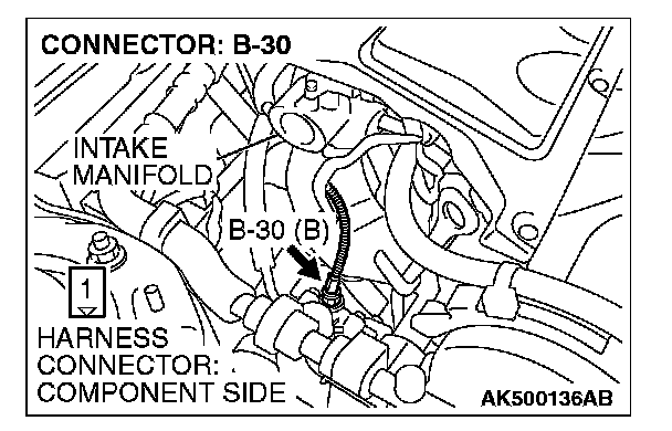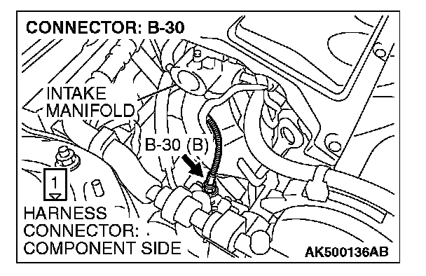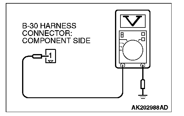 STEP 2. Measure the power supply voltage at power steering pressure switch connector B-30 by backprobing.