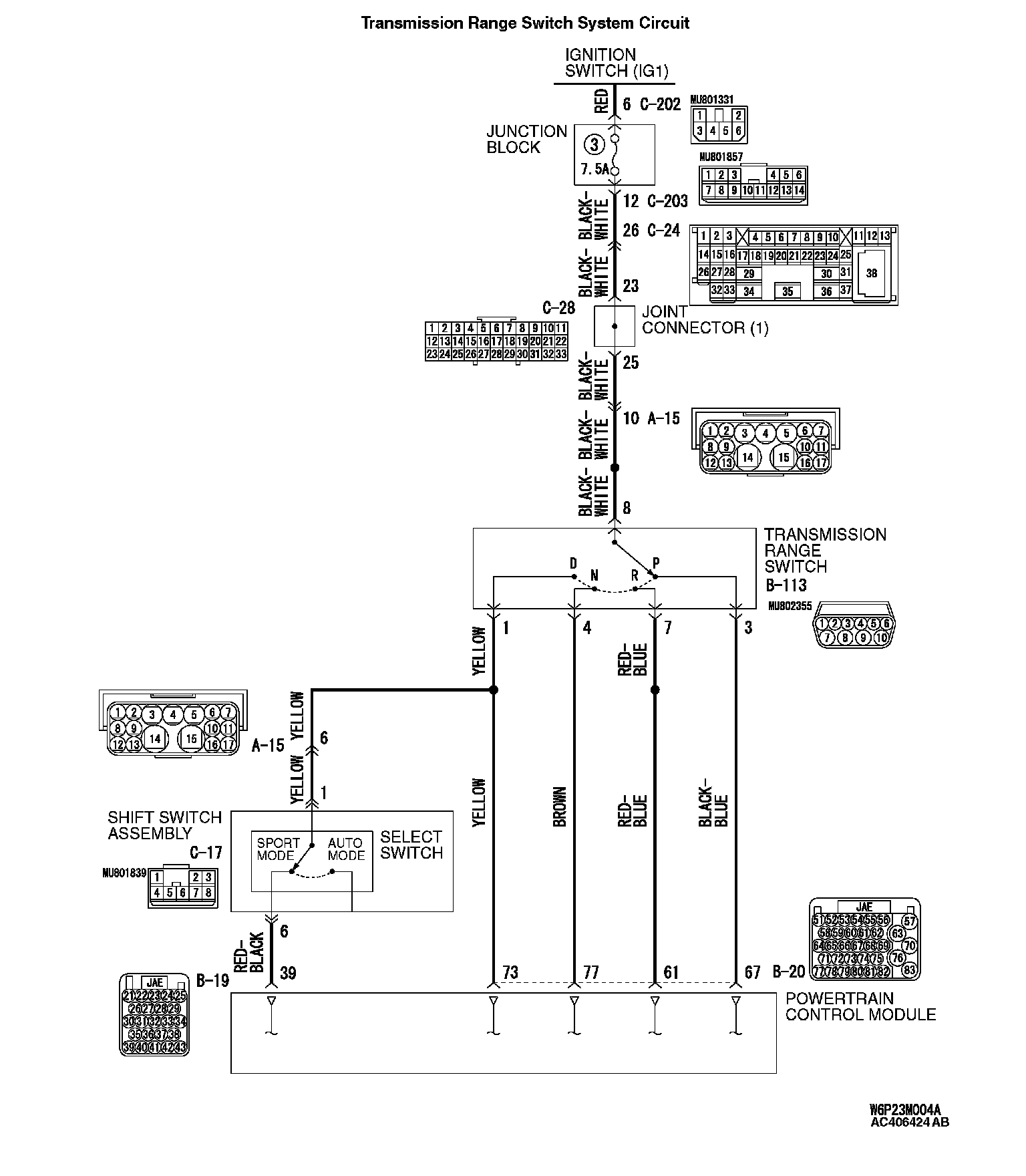 - Battery positive voltage is applied to the PCM (terminal 67) when the transmission range is in the "P" range. The PCM judges that the transmission range is in the "P" range when the battery positive voltage is applied.