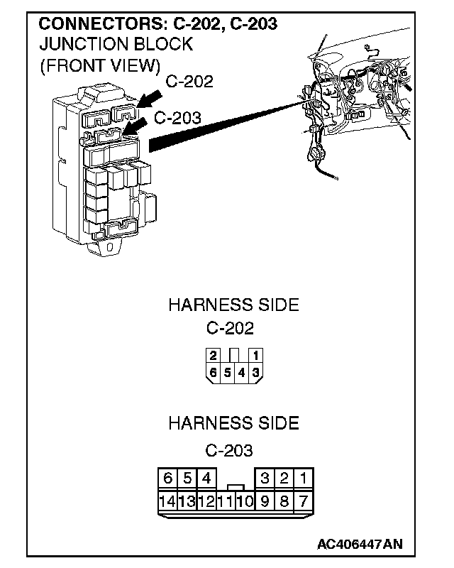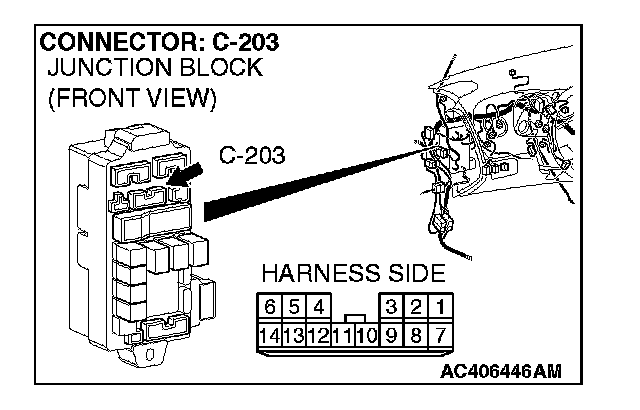 STEP 4. Check harness for open or short circuit to ground between transmission range switch connector B-113 terminal 8 and junction block connector C-203 terminal 12.