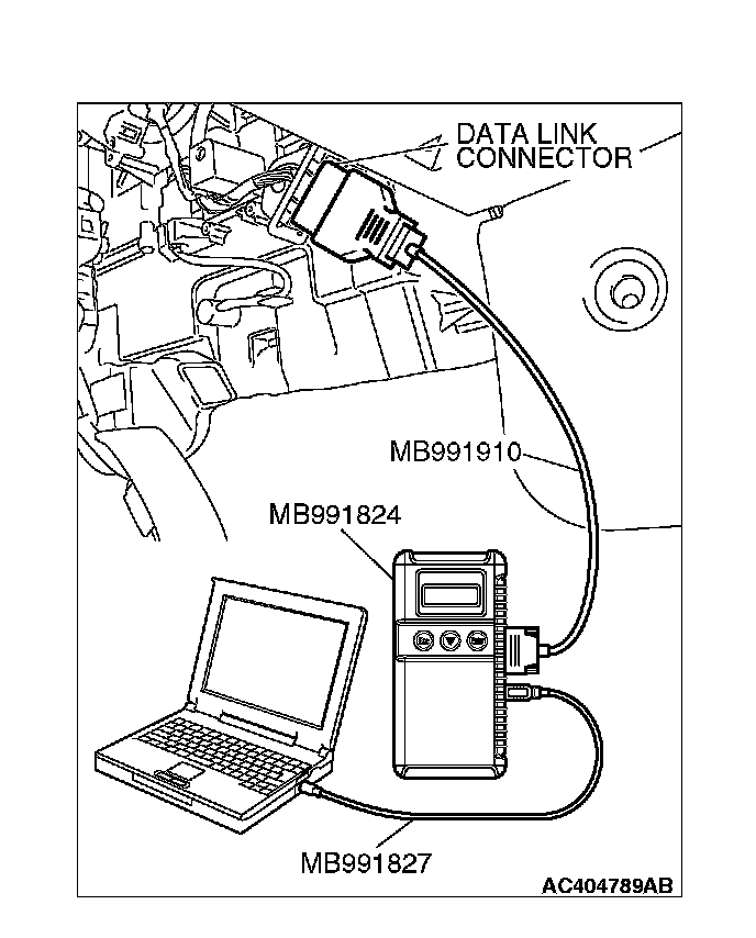 CAUTION: To prevent damage to scan tool MB991958, always turn the ignition switch to the "LOCK" (OFF) position before connecting or disconnecting scan tool MB991958.
