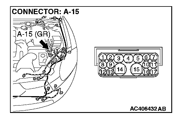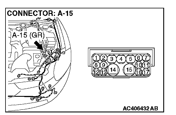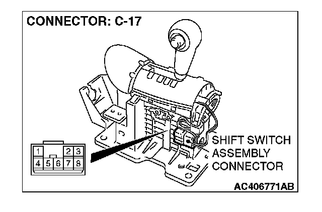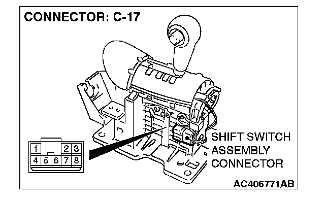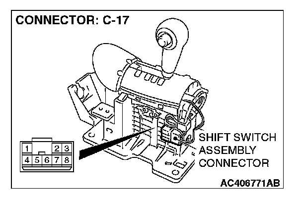 STEP 27. Check intermediate connector A-15 and shift switch assembly connector C-17 for loose, corroded or damaged terminals, or terminals pushed back in the connector.