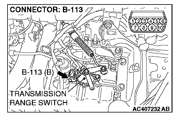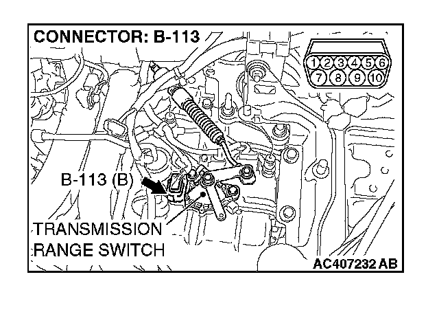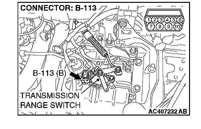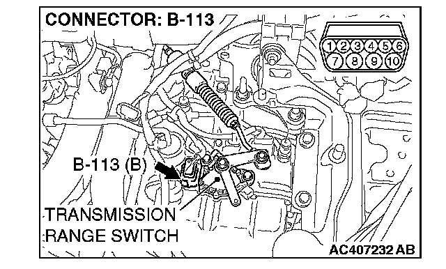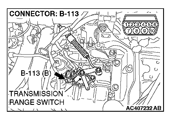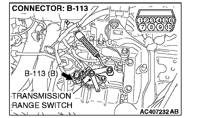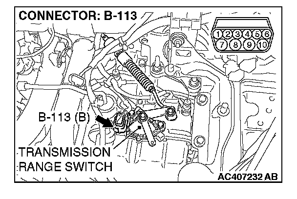 STEP 1. Using scan tool MB991958, check data list item 34: Transmission Range Switch.