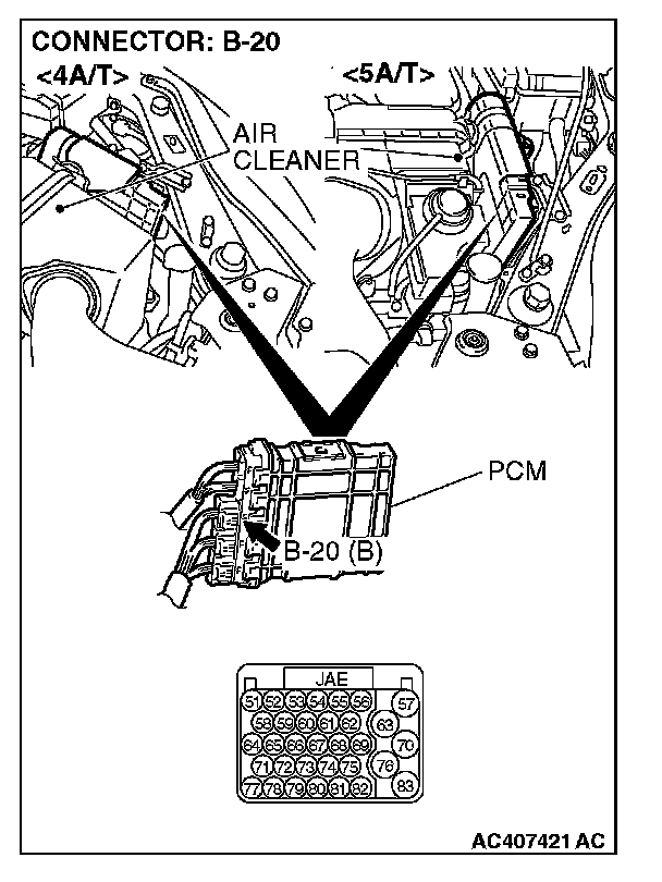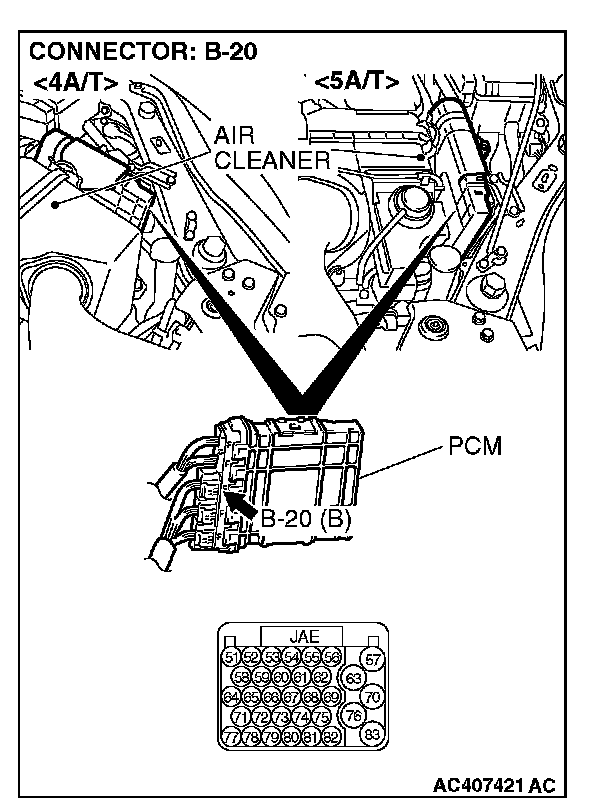 STEP 9. Check PCM connector B-20 for loose, corroded or damaged terminals, or terminals pushed back in the connector.