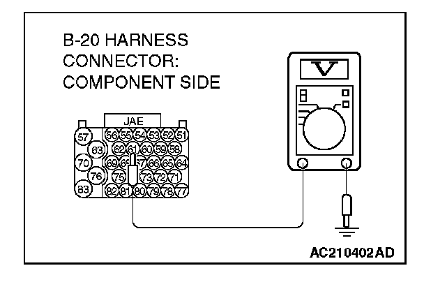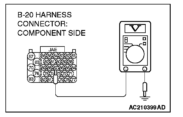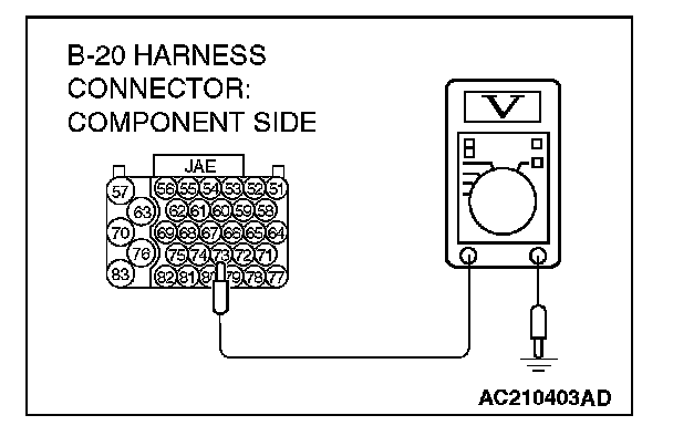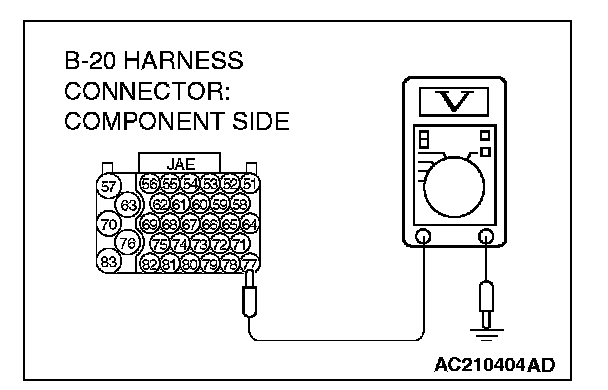 STEP 19. Measure the transmission range switch output voltage at PCM connector B-20 by using check harness special tool MB991923.
