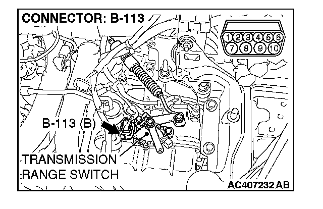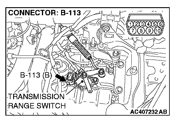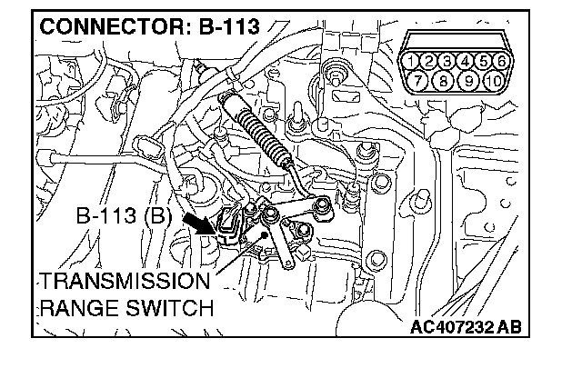 STEP 7. Check transmission range switch connector B-113 for loose, corroded or damaged terminals, or terminals pushed back in the connector.