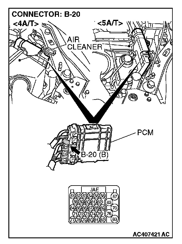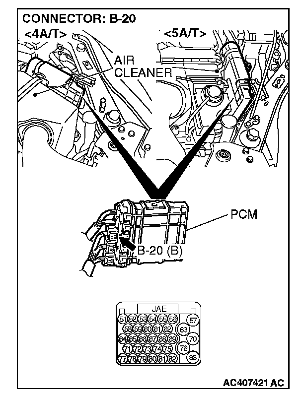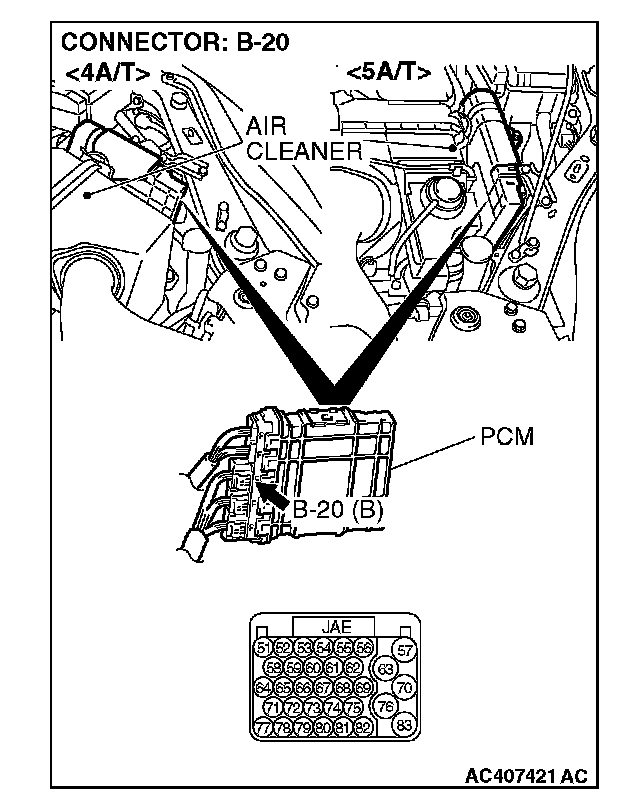 STEP 11. Check PCM connector B-20 for loose, corroded or damaged terminals, or terminals pushed back in the connector.