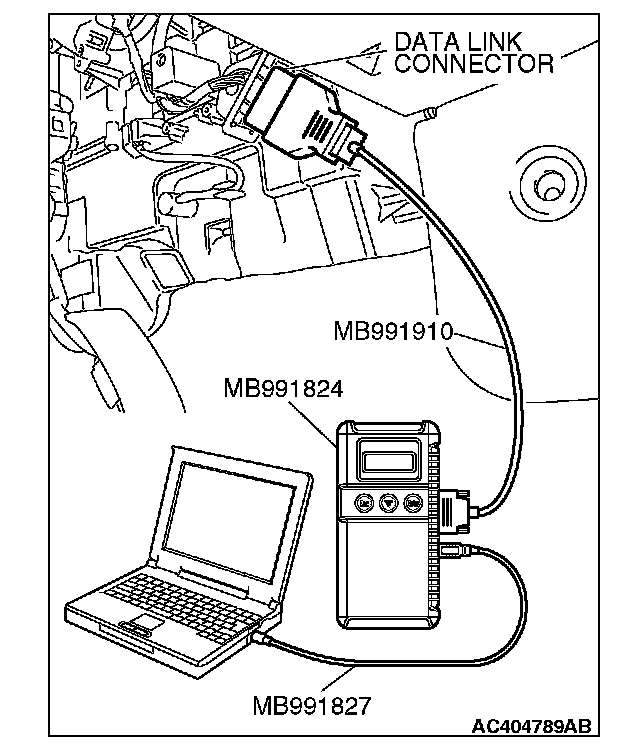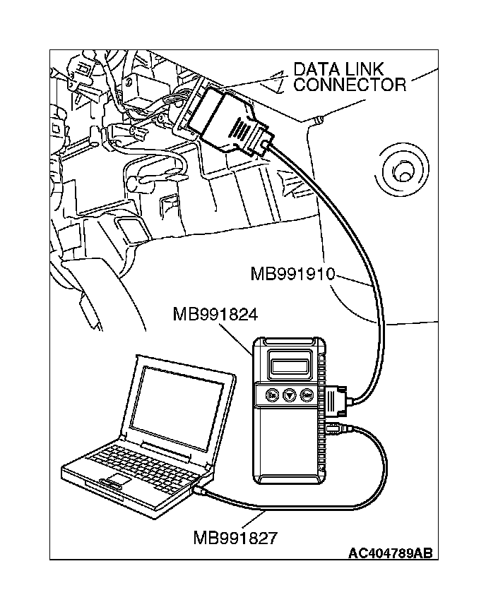 (1) Connect scan tool MB991958 to the data link connector.