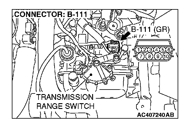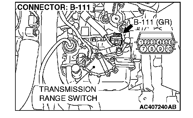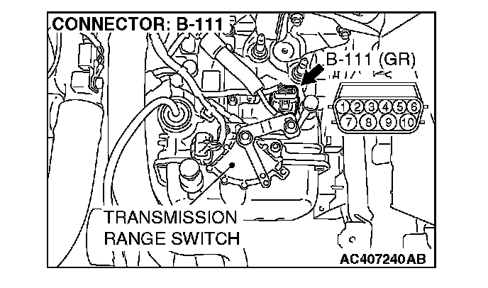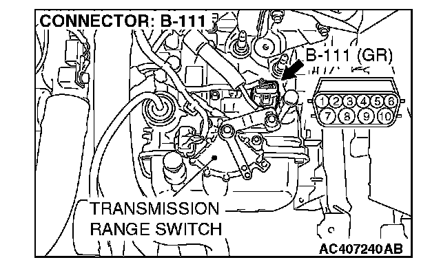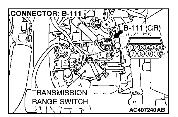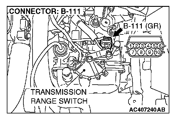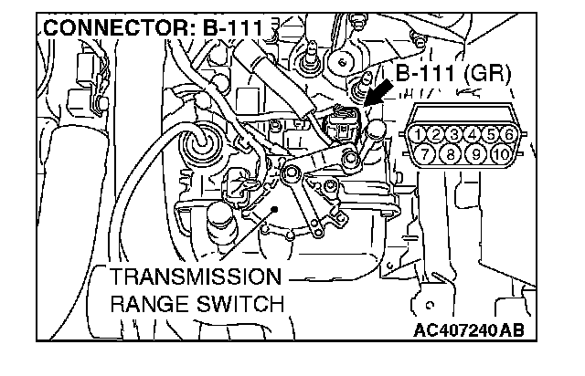 (3) Measure the voltage between harness connector B-111 terminal 10 and ground.