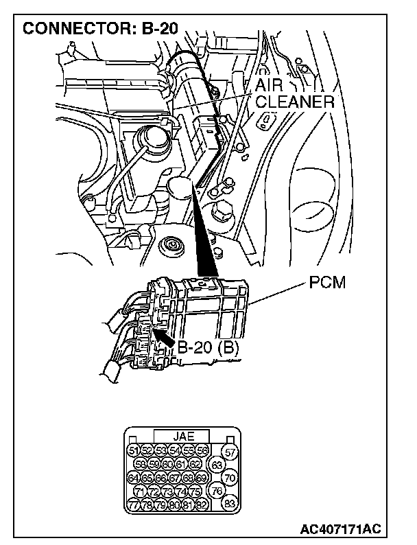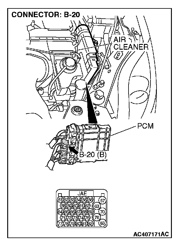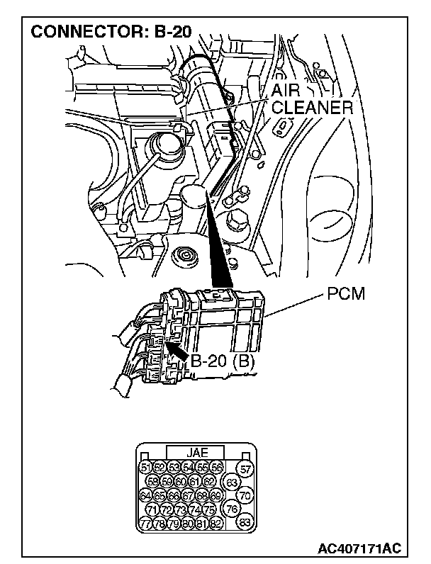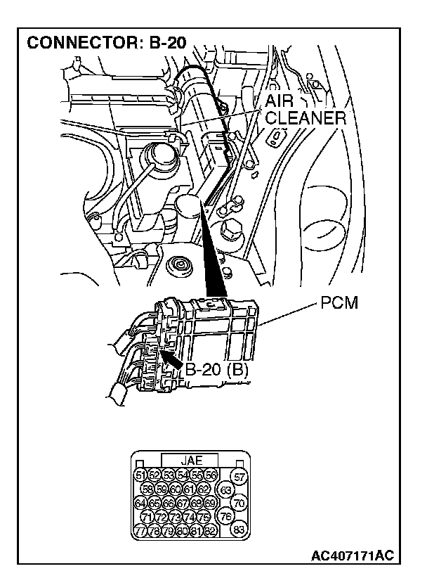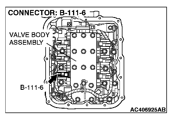 STEP 6. Check PCM connector B-20 and A/T control solenoid valve assembly connector B-111 for loose, corroded or damaged terminals, or terminals pushed back in the connector.