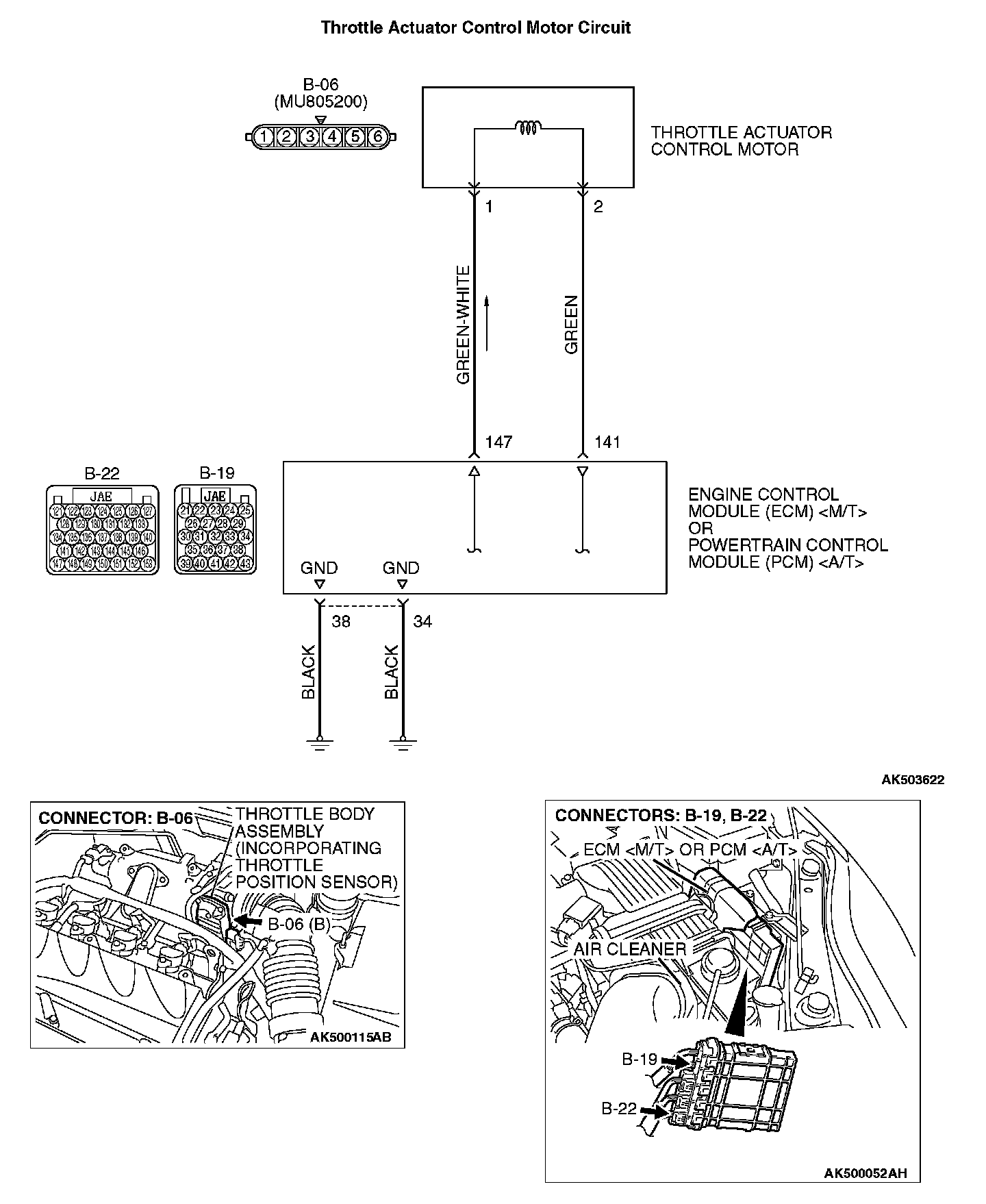 - Open throttle actuator control motor circuit, harness damage or connector damage.