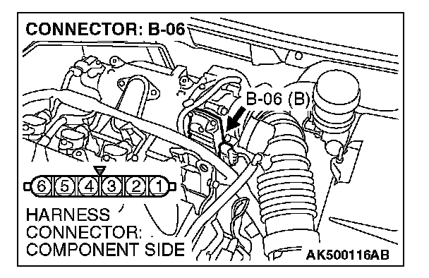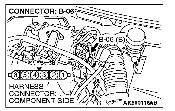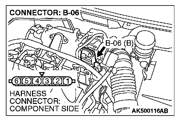 STEP 1. Check harness connector B-06 at throttle actuator control motor for damage.