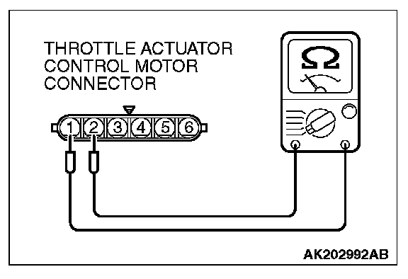 2. Measure the resistance between throttle actuator control motor side connector terminal No. 1 and No. 2.