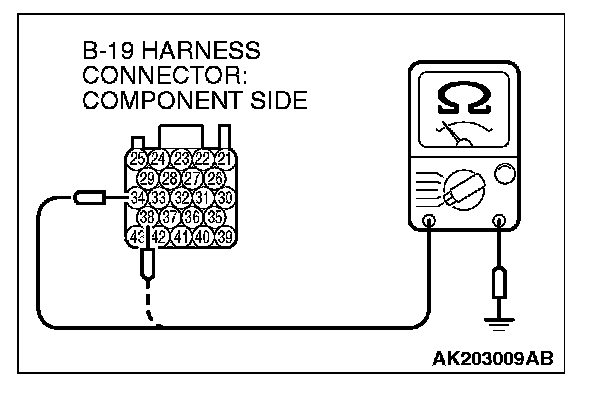 2. Measure the continuity between terminals No. 34, No. 38 and ground.