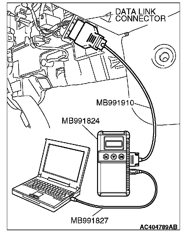 1. Connect scan tool MB991958 to the data link connector.
