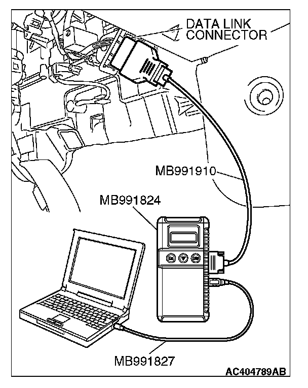 1. Connect scan tool MB991958 to the data link connector.
