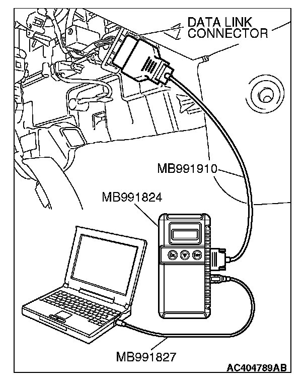 1. Connect scan tool MB991958 to the data link connector.