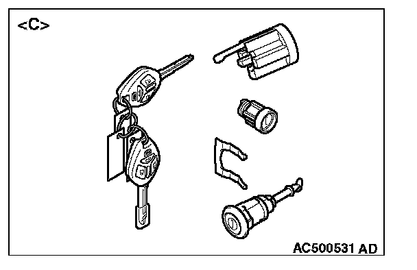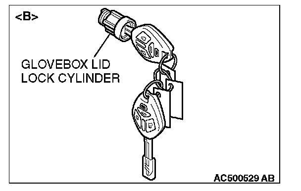 - Do not register the ignition keys other than the ignition key that starts the engine. (When replacing by the door lock key cylinder of illustration or the glove box lid lock cylinder of illustration , the engine cannot start if the encrypted code is registered with the bar code on the ignition key supplied simultaneously. If the ignition key using for each lock cylinder and starting engine is used as a common ignition key, replace by the key set of illustration
