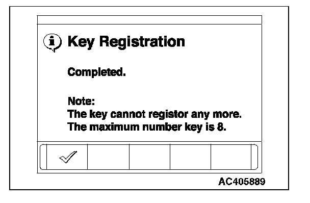 10. A maximum of eight ignition keys can be registered. When the registration of the eighth ignition key is finished, key registration completion menu is displayed. Press the OK button and finish the ignition key registration.