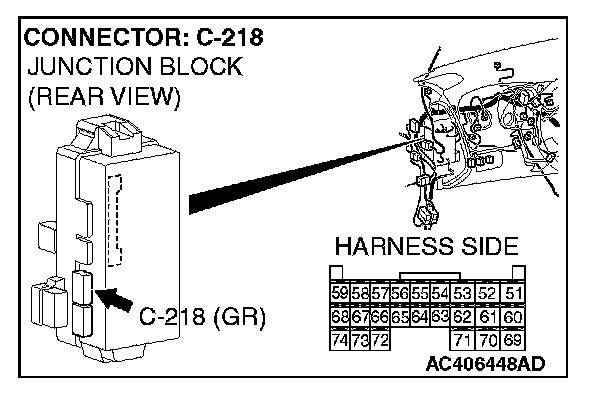 STEP 1. Check ETACS-ECU connector C-218 for loose, corroded or damaged terminals, or terminals pushed back in the connector