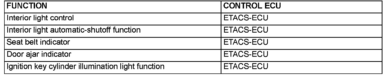 The ETACS-ECU controls the interior lights by turning them on and off in the following way: