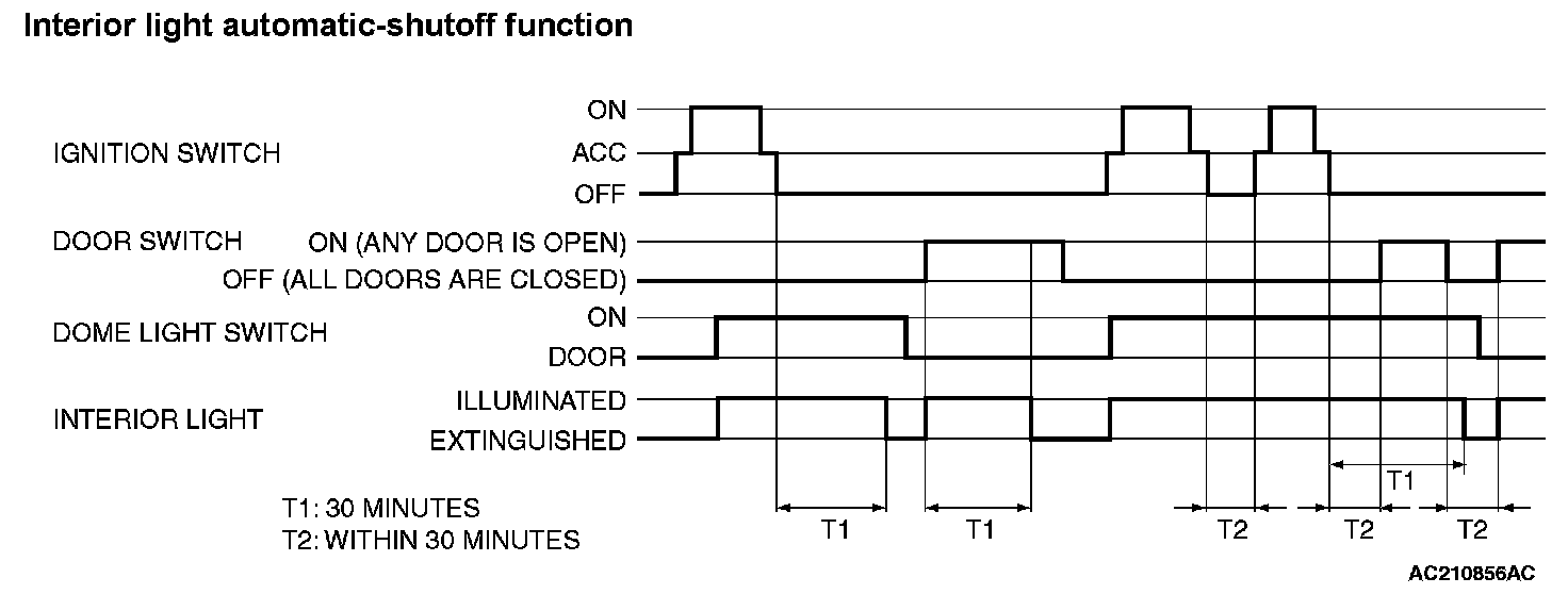 - When the ignition switch is turned off and more than 30 minutes pass by with the interior light illuminated, the interior lights will go off automatically.