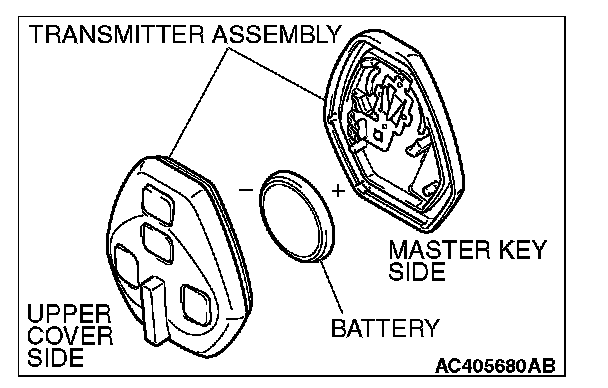 Install a new battery to the transmitter assembly with its (+) side facing towards the master key side.