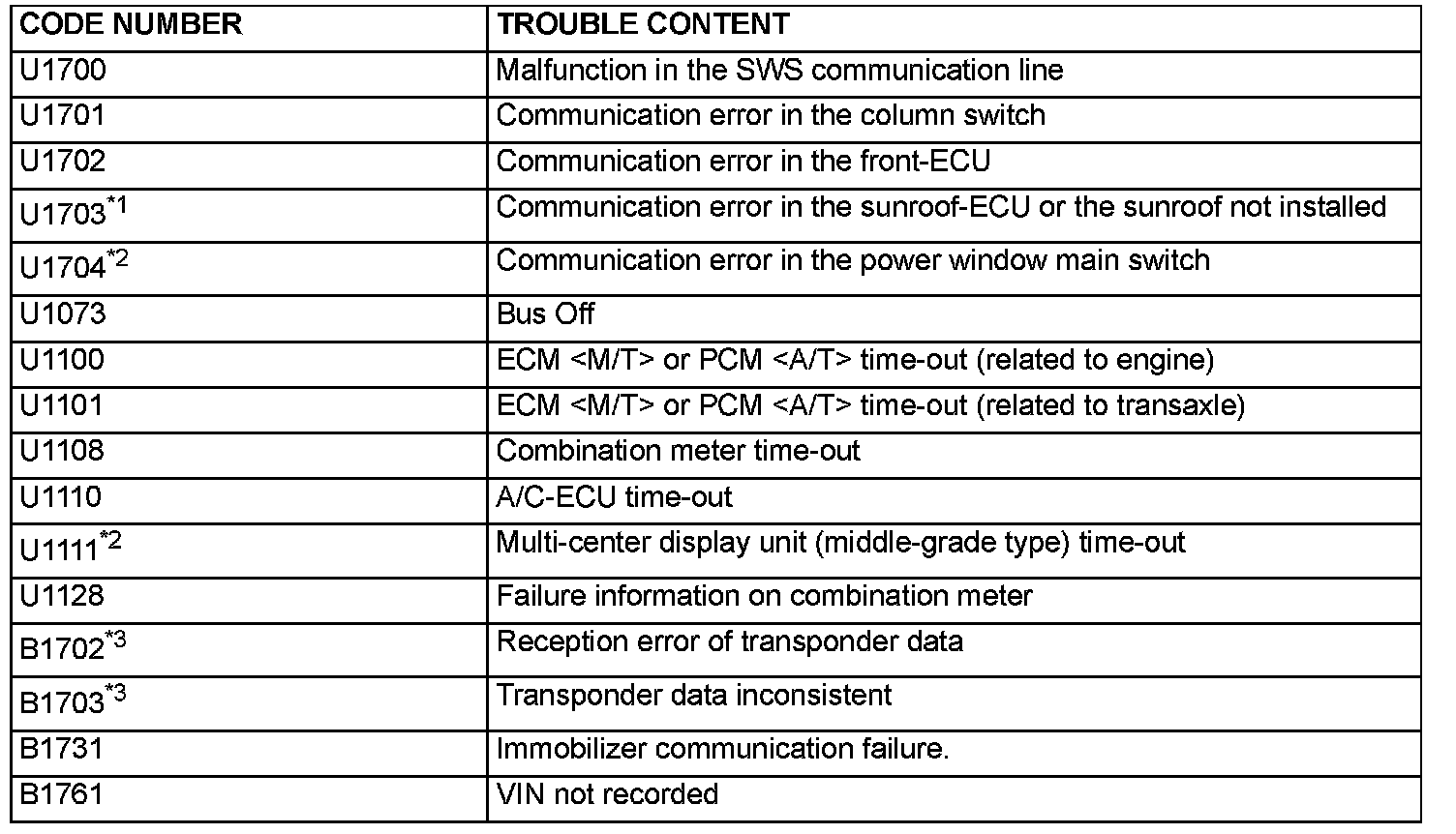 NOTE: *1 For vehicles that do not have a sunroof, the diagnosis code is always sent but it does not indicate a problem.