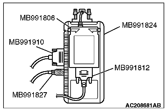 NOTE: When special tool MB991824 is energized, special tool MB991824 indicator light will be illuminated in a green color.