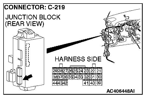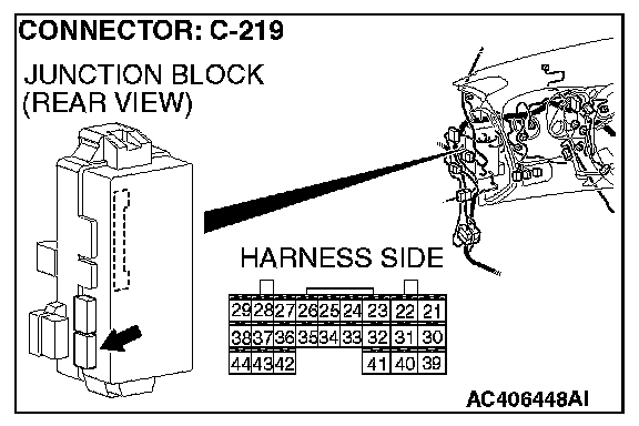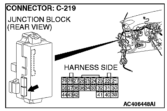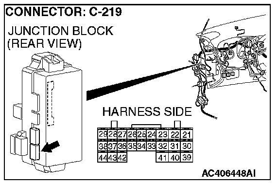 STEP 16. Check ETACS-ECU connector C-219 for loose, corroded or damaged terminals, or terminals pushed back in the connector.