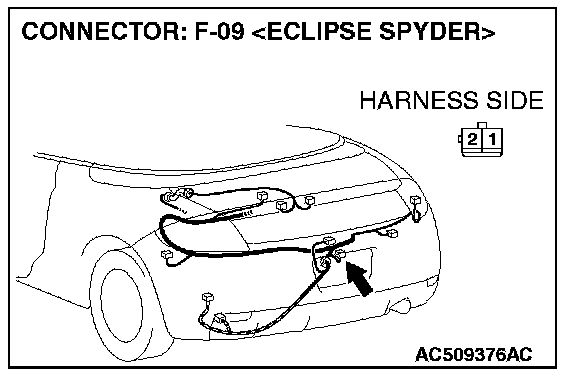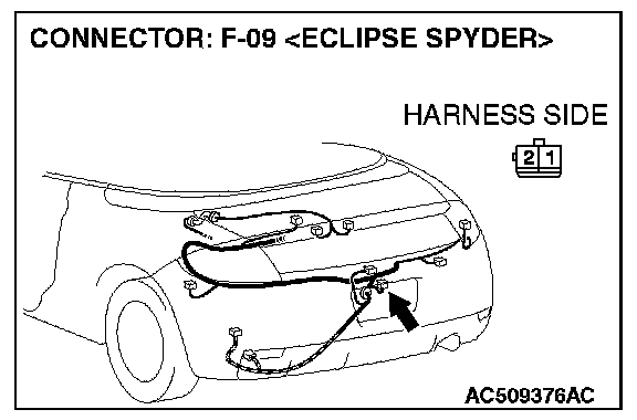 STEP 19. Check trunk lid latch switch connector F-09 for loose, corroded or damaged terminals, or terminals pushed back in the connector.