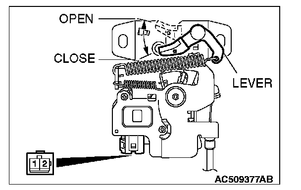 Remove the trunk lid latch switch. The illustration shows when the door lock actuator is viewed from inside the door. Refer to Door Handle and Latch.