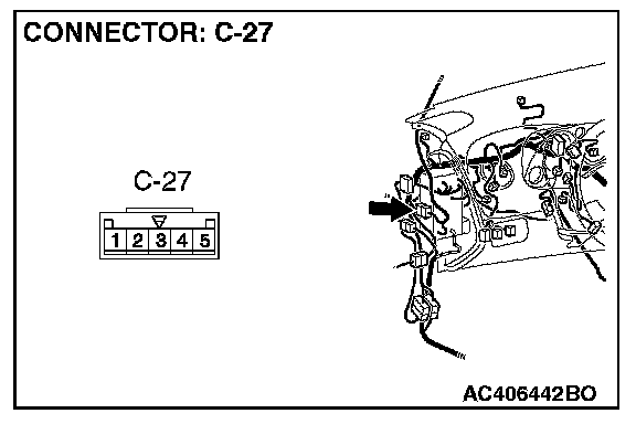 NOTE: Also check intermediate connector C-27 for loose, corroded, or damaged terminals, or terminals pushed back in the connector. If intermediate connector C-27 is damaged, repair or replace the damaged component(s) as described in Harness Connector Inspection.
