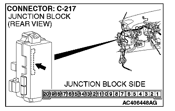 STEP 13. Check the wiring harness between rear dome light connector D-06 (terminals 1 and 3) and ETACS-ECU connector C-217 (terminals 5 and 6).