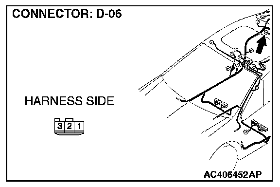 1. Disconnect rear dome light connector D-06 and measure the resistance available at the wiring harness side of the connector.