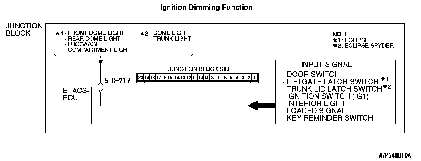 The ETACS-ECU operates the dome light dimming function according to the input signals from the following switches: