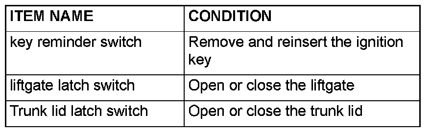 When the liftgate is opened and closed, scan tool MB991958 does not sound: Refer to Inspection Procedure N-6 "ETACS-ECU does not receive any signal from liftgate latch switch.