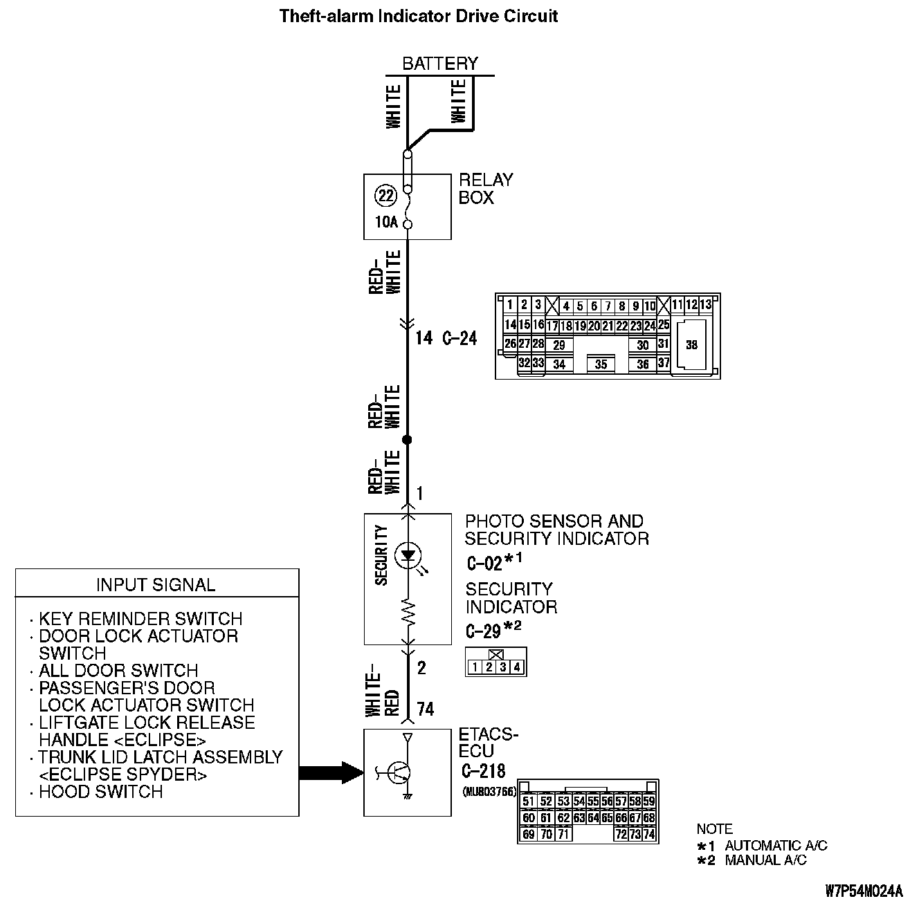 - The ETACS-ECU sets the theft-alarm system according to the input signals from the following signals: