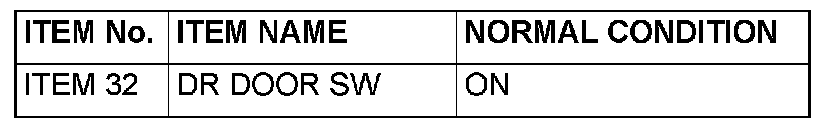 Q: Does the scan tool show the respective normal condition for item "DR DOOR SW."?
