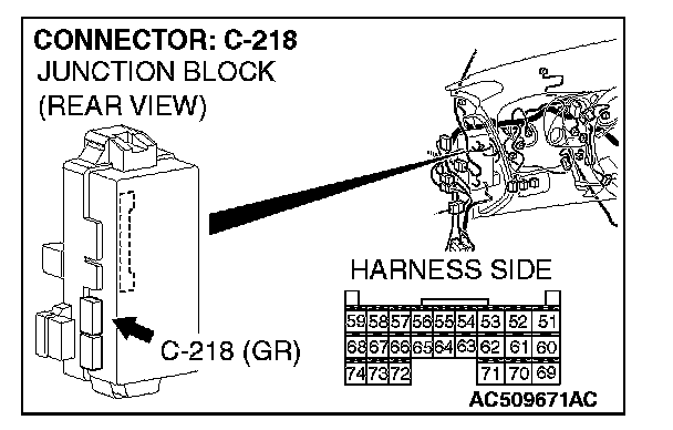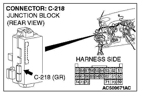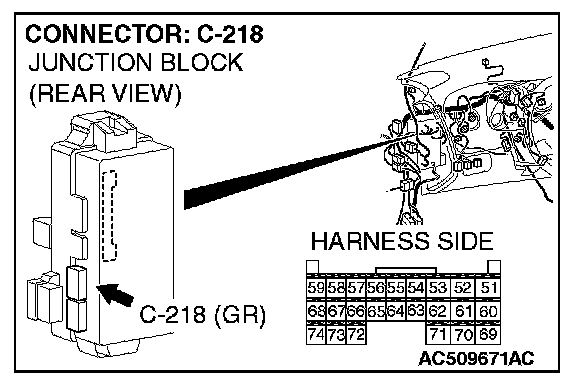 STEP 4. Check ETACS-ECU connector C-218 for loose, corroded or damaged terminals, or terminals pushed back in the connector.
