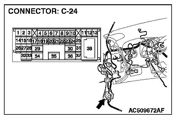 NOTE: Also check intermediate connector C-24 for loose, corroded, or damaged terminals, or terminals pushed back in the connector. If intermediate connector C-24 is damaged, repair or replace the damaged component(s) as described in Harness Connector Inspection.